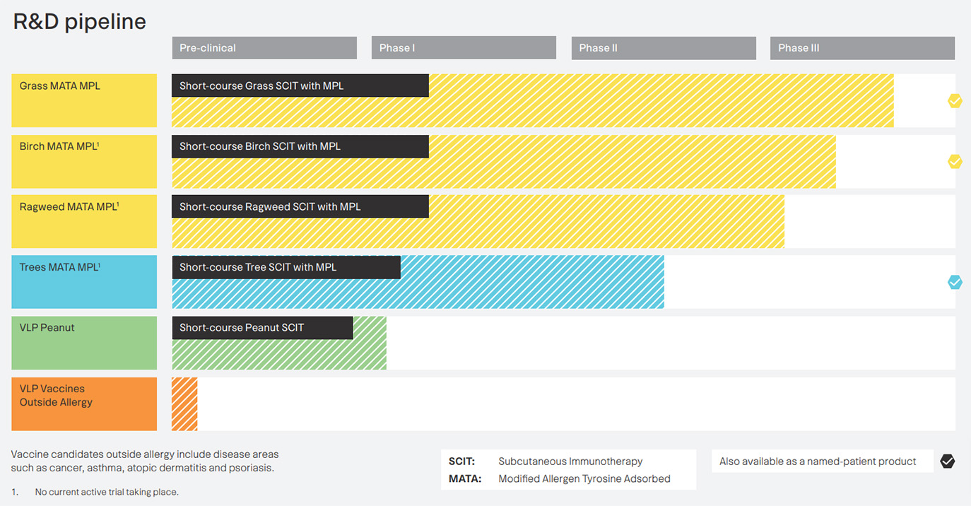 We have a long-term commitment to the research and development of innovative therapies for the diagnosis and treatment of allergy-related conditions. Our current portfolio includes marketed and named patient products.